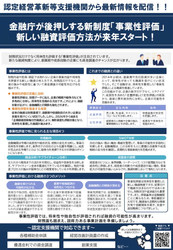 新しい融資評価方法が来年スタート!金融庁が後押しする新制度「事業性評価」