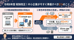 ※上記情報は2026年2月時点の法令に基づいています。具体的な設定方法は、ご利用の会計ソフトのヘルプや、当事務所までお問い合わせください。